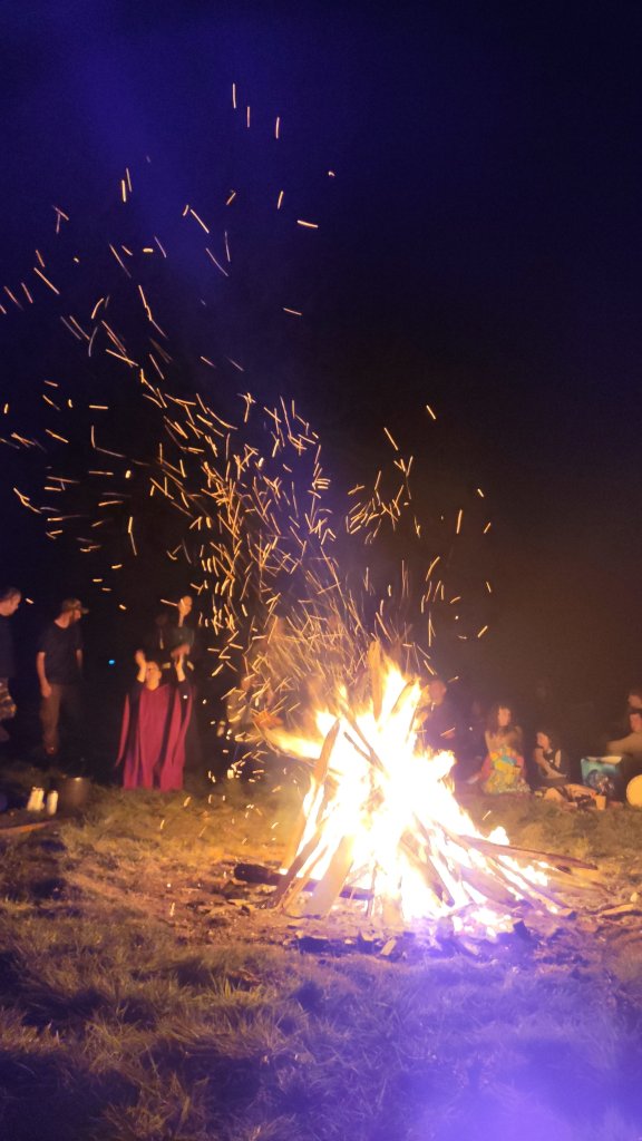We ended our Saturday with fish and chips to munch in a local town, and once back at the campsite we walked to the communal Beltane fire, to listen to tales, songs and drummers.