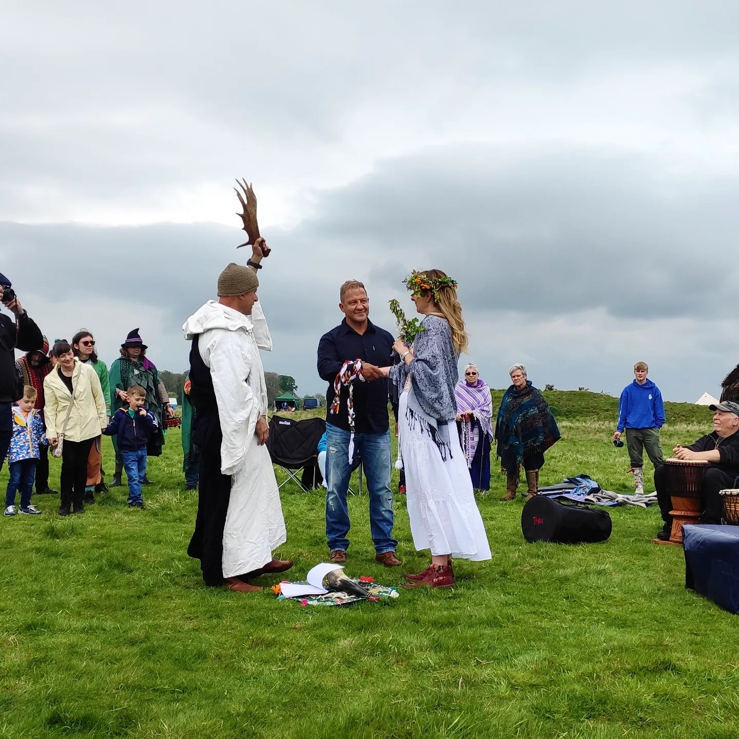 Sunday arrived and it’s the opening ceremony, so we gathered in the centre of the Henge. We called the quarters and cast the circle, energies raised, lit the Beltane fire and watched some Handfastings.