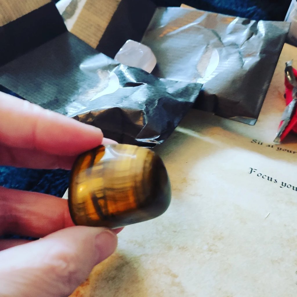 I also had a protection powder included, see photo above the rose quartz. A beautiful big Tigers eye crystal, and 2 hand dipped Red candles. Which are amazing. And finally there was charcoal also included which I loved, as I actually di£nt have any, and I found this inclusion super helpful.