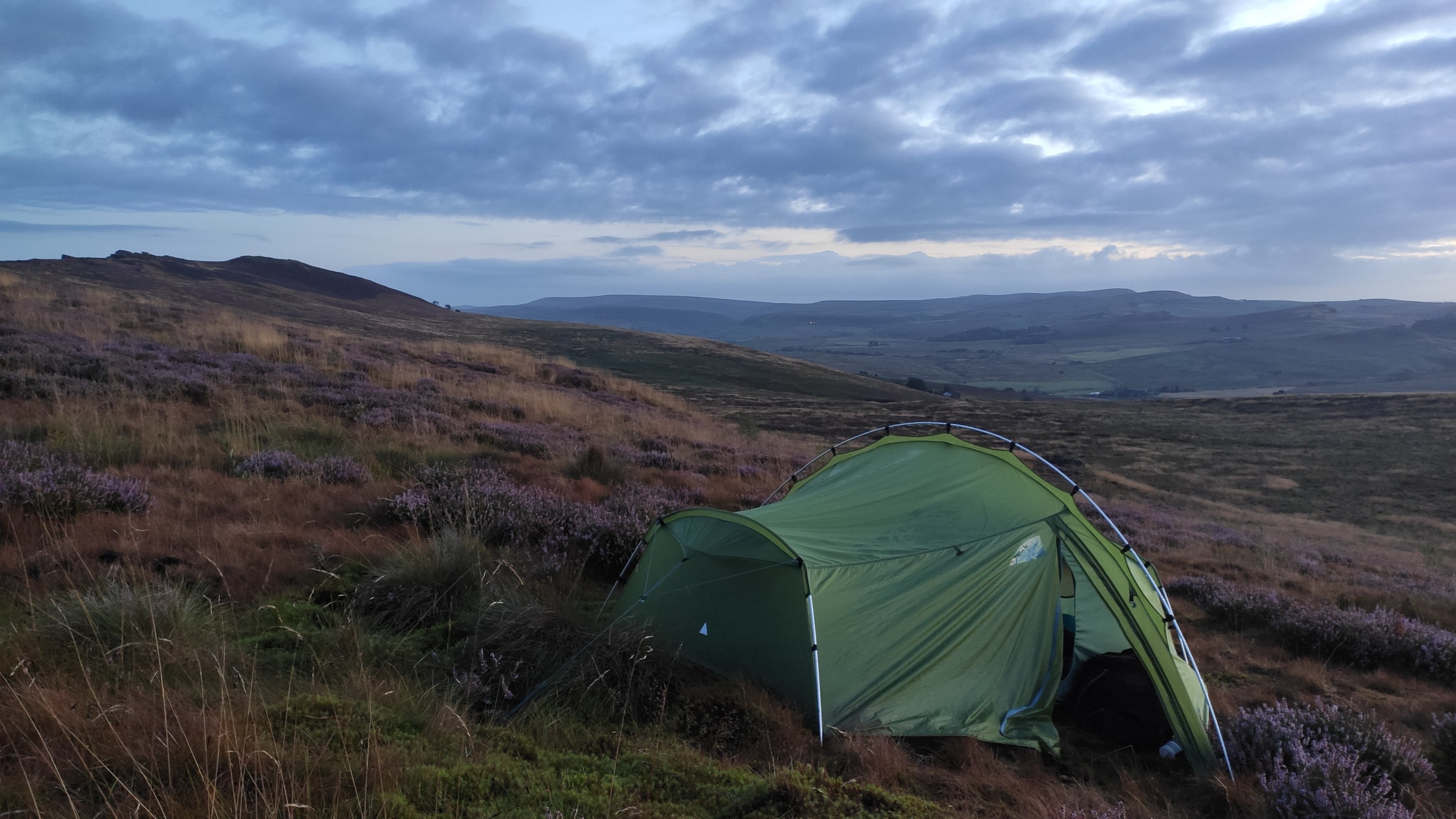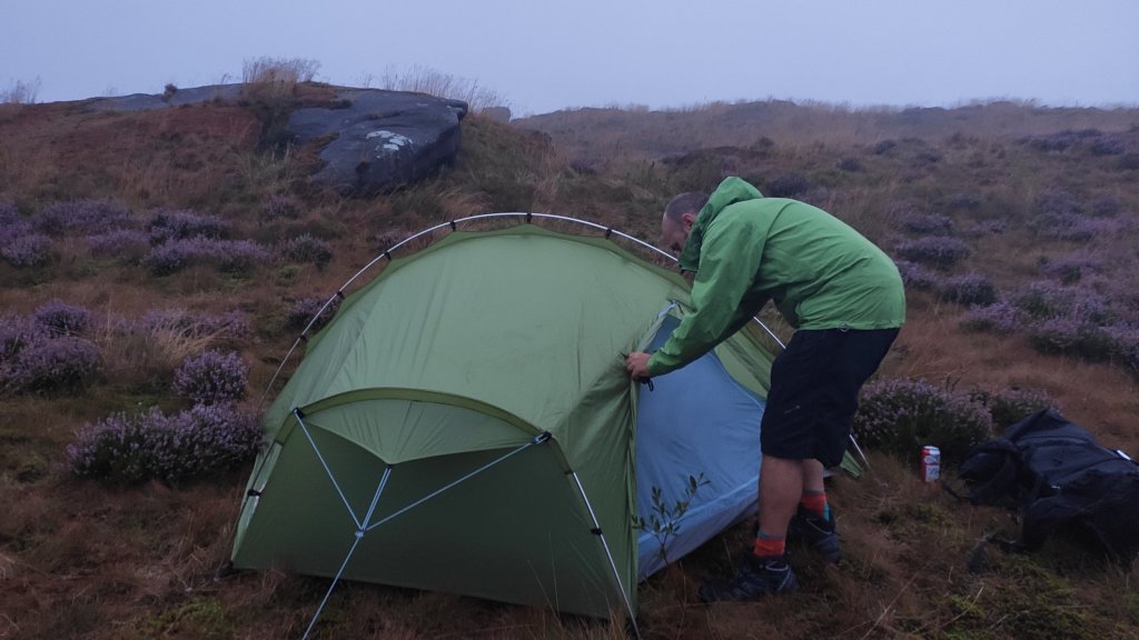 Mist rolled in and made the place look more bleak and atmospheric, like a scene from the Hound of the Baskerville’s. But within 10 minutes of finding a spot, the tent was up. Pitched not where we had originally wanted too, but the fading light and mist, forced us to pitch earlier than planned.