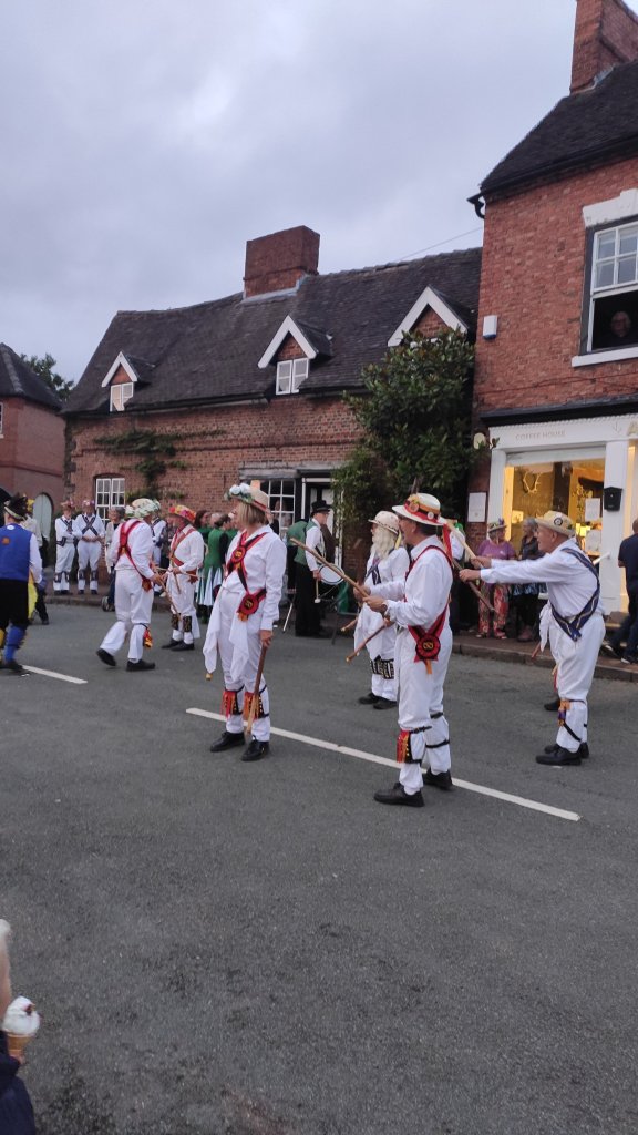 The evening is drawing in, feels so early and the first sign the nights are drawing in and autumn is here. The sky puts on a beautiful pastel sunset, as the next Morris dancers grab some willing participants from the audience to join in with a dance.