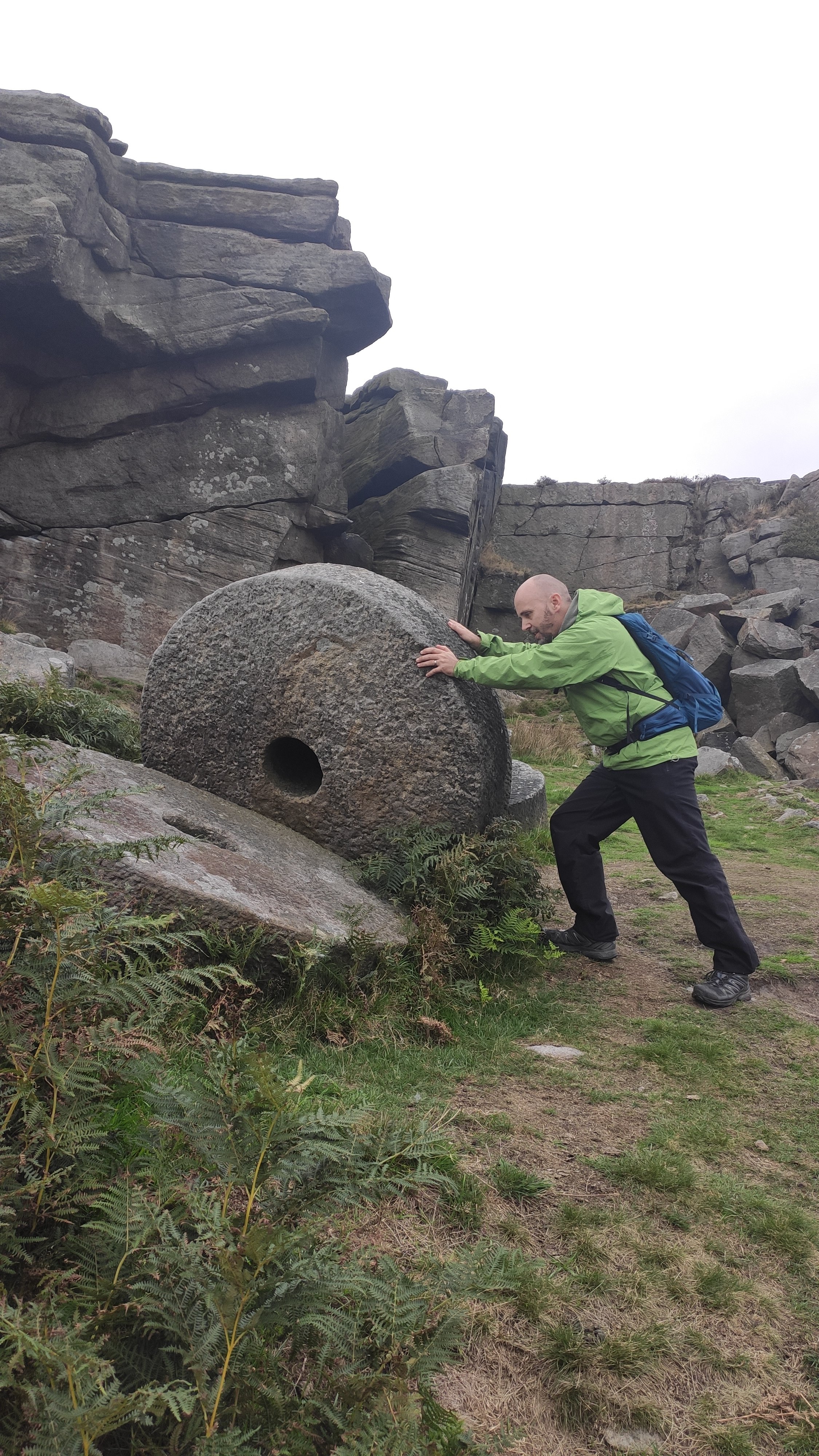 Millstones are heavily featured in the Peak District, and they are massive. So we love hunting them in each walk.