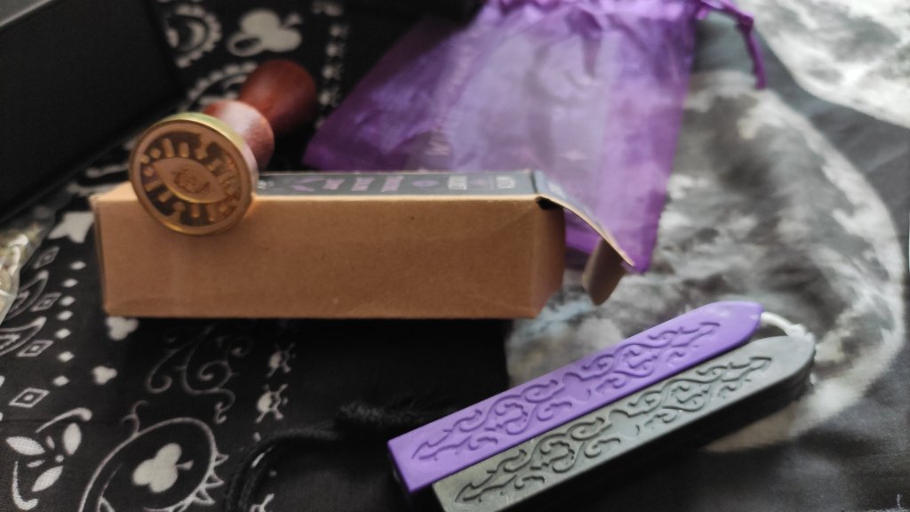 The First 2 items I unpack I was super excited over, a Wax Seal (with the all seeing eye) and 2 wax candles to use to stamp. I have always wanted one of these, I can’t wait to play with them.