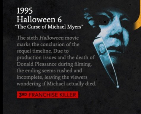 Continuing on from the previous post on the Halloween franchise that I’ve never seen before, until now. We start at film 6 and it’s 1995. The special effects are getting better, as the decades change.
