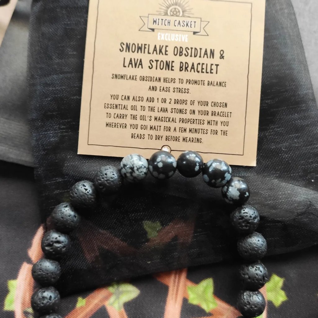 Snowflake Obsidian and Lava Stone bracelet is the perfect partner to the oil, as you can place a drop or two on the lava stones, allow to dry and then wear it. The scent is sure to calm, Snowflake Obsidian is known to help promote balance and ease stresses.