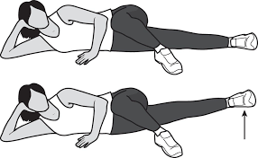 This exercise will help improve your hip mobility and strengthen your gluteus muscles. Lie down on your side with both legs bent at a 90-degree angle, and your bottom arm supporting your head.