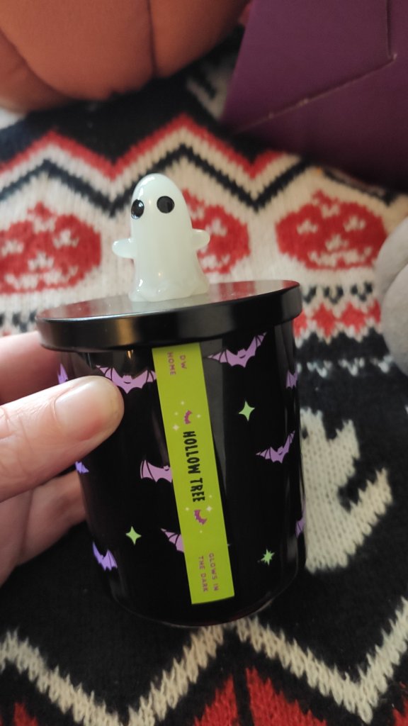 Along with these fabulous candles, she also treated me to two velvet pumpkins from Hobbycraft, and a glass pumpkin with lid, you can use on sweets or biscuits. I might put autumn leaves and fairy lights on mine instead. Make it a cosy night light.