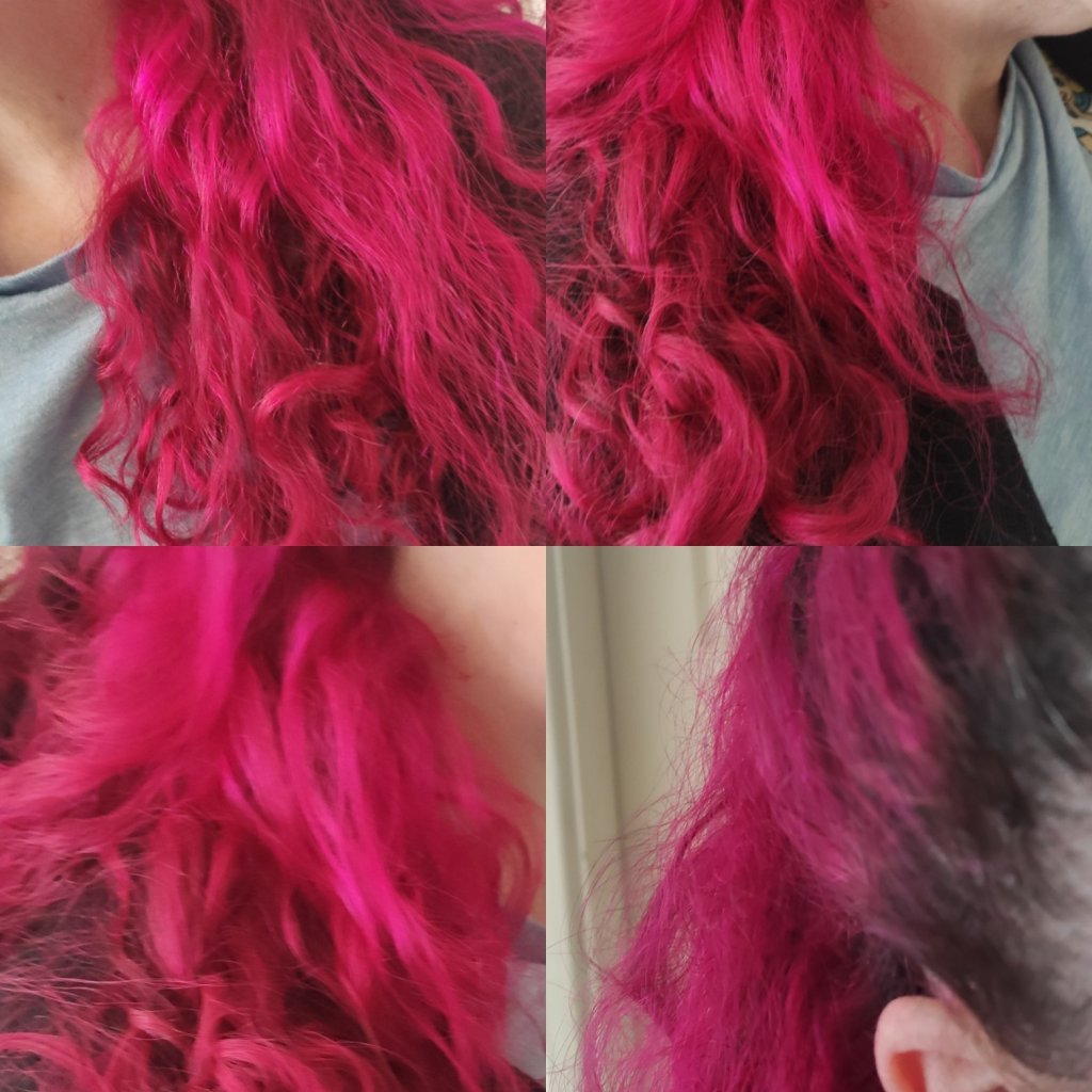 Thankfully we could totally re do the pink and bleached hair with all the end bits of Stargazer Magenta, which means next time I dye it, I will use hell kitty by Killstar. I left the pink on for 5 hours, to really let it absorb in. (Perfect excuse to watch films too)