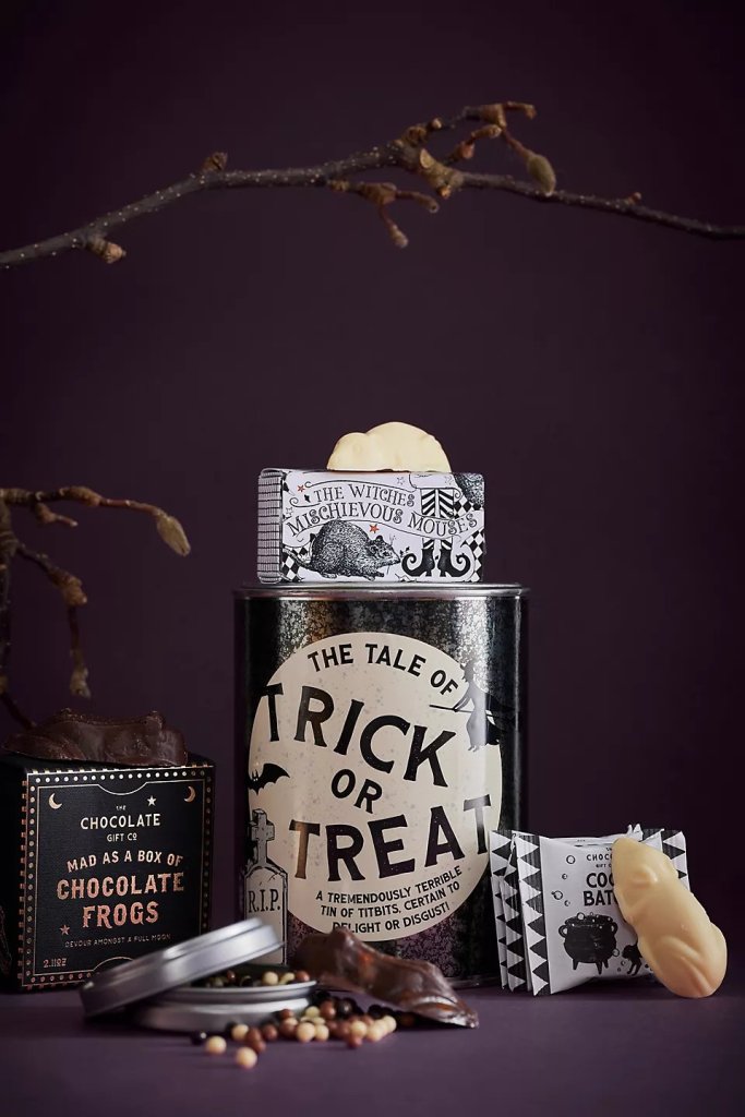 Adults need a treat or two as well, children don’t have to have all the fun you know. Perfect chocolate mice, or frogs are inside this keepsake tin.