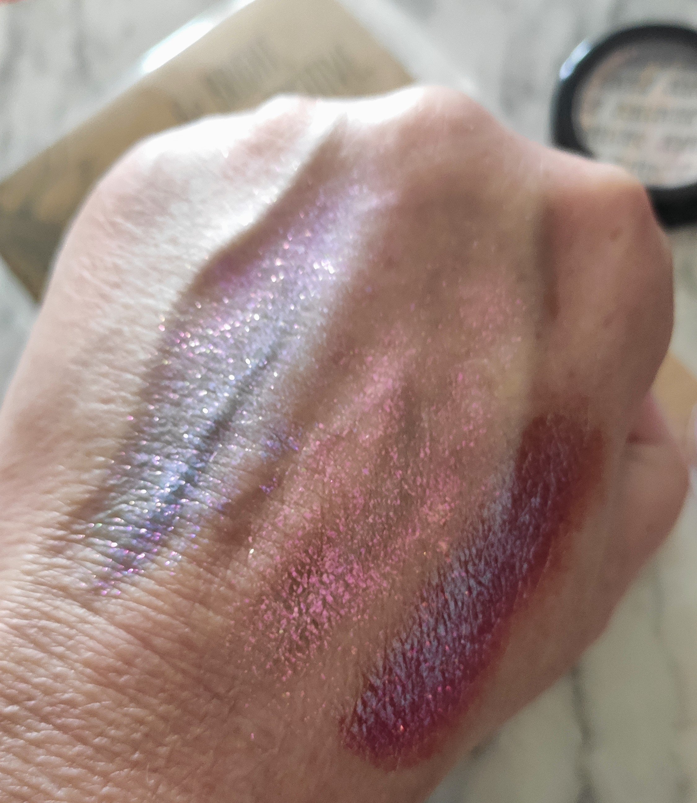 I’ve ordered some eye primer to help create a better base for the eyes, to be under this glitter. They all shimmer and shift so much under lights and daylight, I can’t wait to wear them out.