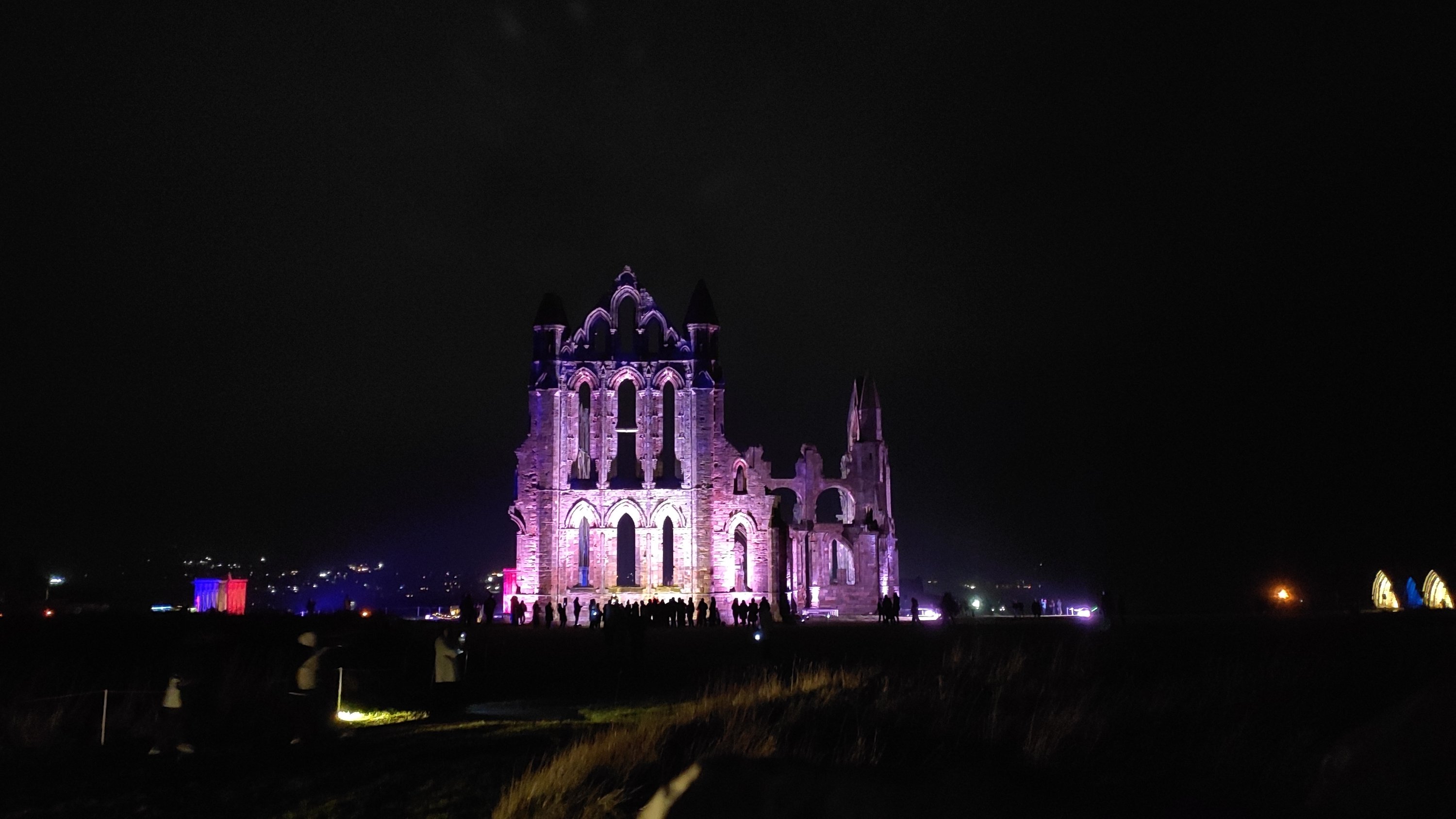 We visited the Church and this year it was FULL of photoshoots, coats on gravestones, standing on graves, sitting on the stone I find it is disrespectful behaviour, and no not from the Goths as they full know and wouldn’t do it. So this did dampen my spirits a tad. As it got dark and the partial lunar eclipse was upon us we discovered beautiful dressed windows and scary tunnels, and the lit up Abbey (in the Dracula book film)