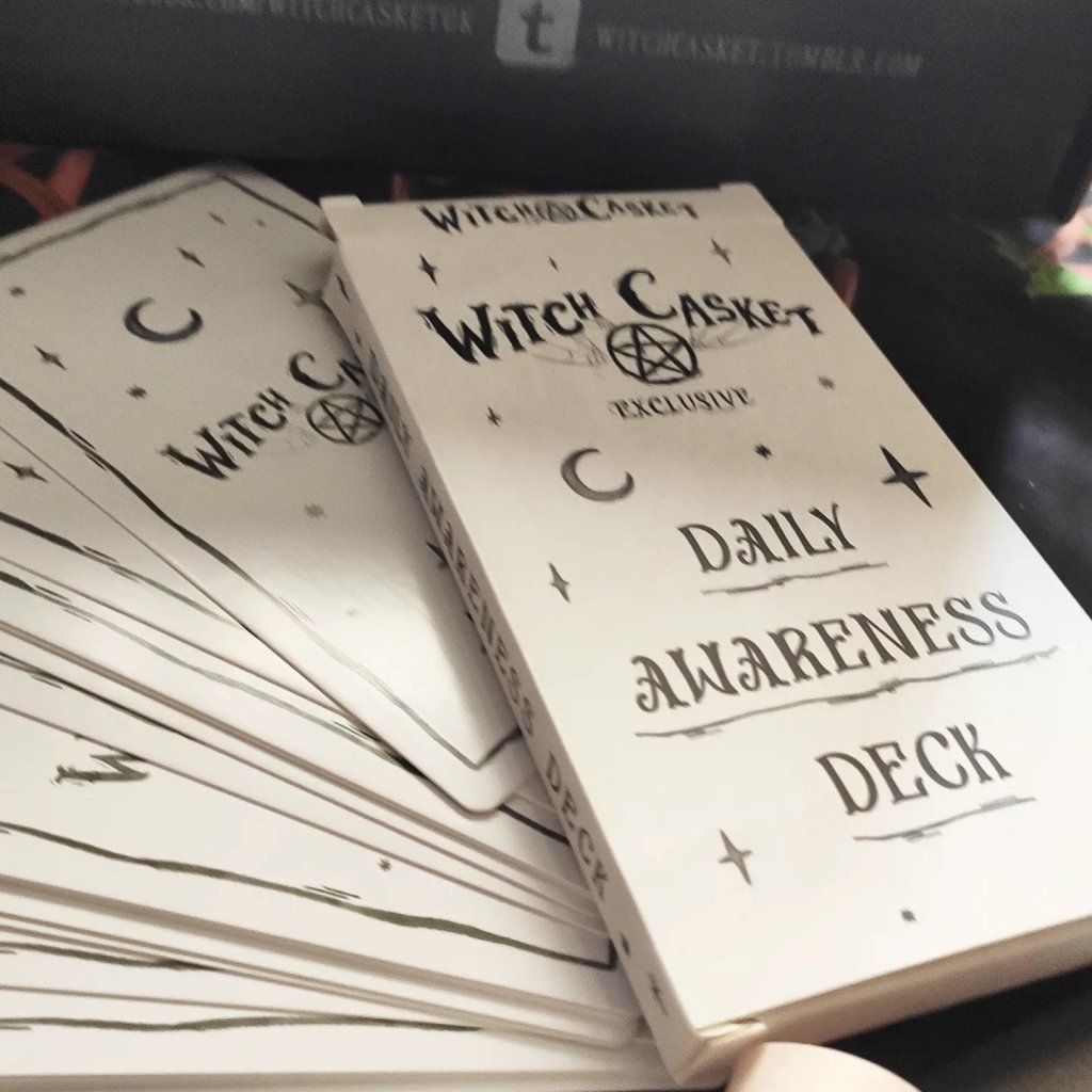 Daily Awareness Deck, a deck to help focus your day, give you a goal or task to work towards, encouraging some self care, use intuition, and feel gratitude. Pull a card a day.