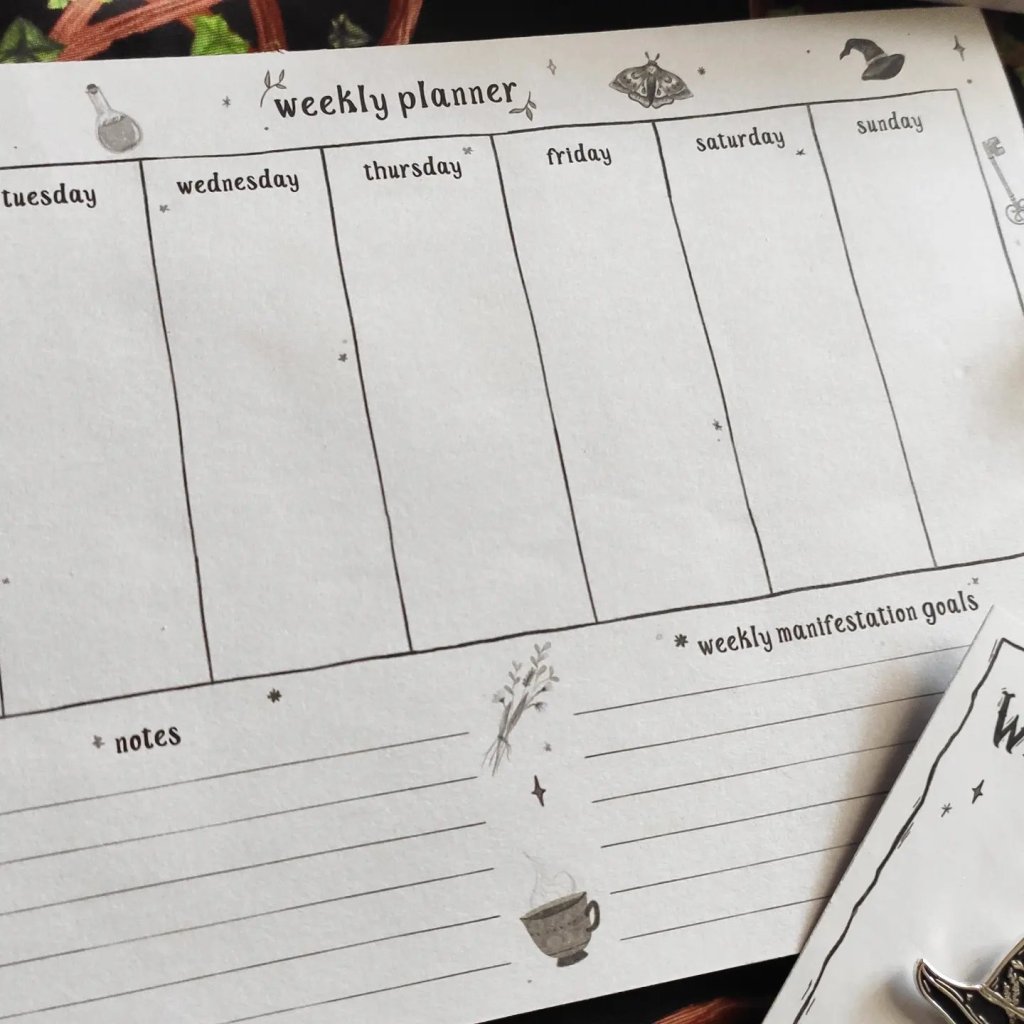 Witchy Weekly Planner, a weekly planner to help you keep track of your daily magick, manifestations, and affirmations. I love being organised and in a routine, do this will help.