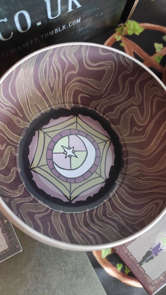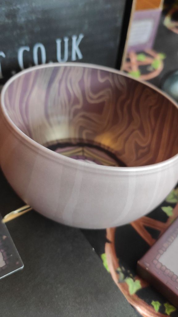 Ritual bowl, giving me Wednesday series vibes and I’m definitely here for that. I love the web and moon design inside. Use for offerings, herbal work, crystals. Only handwash though. I got some new crystals off my daughter for Christmas and they will be going in here.