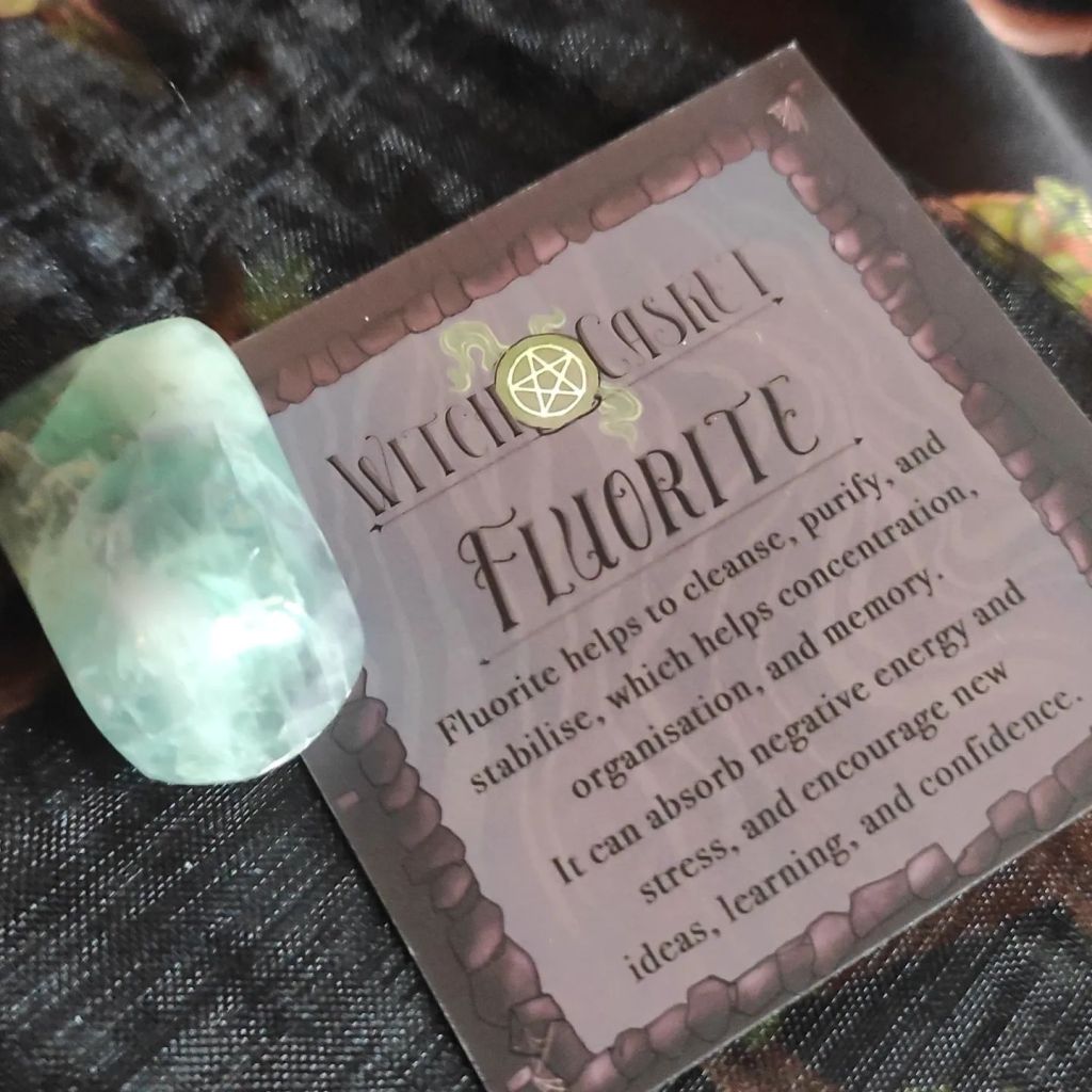 Crystal of the month is FLOURITE, for cleansing, purifying, and stabilization. Use to aid your memory recall, your concentration, I need this for my organizational skills.