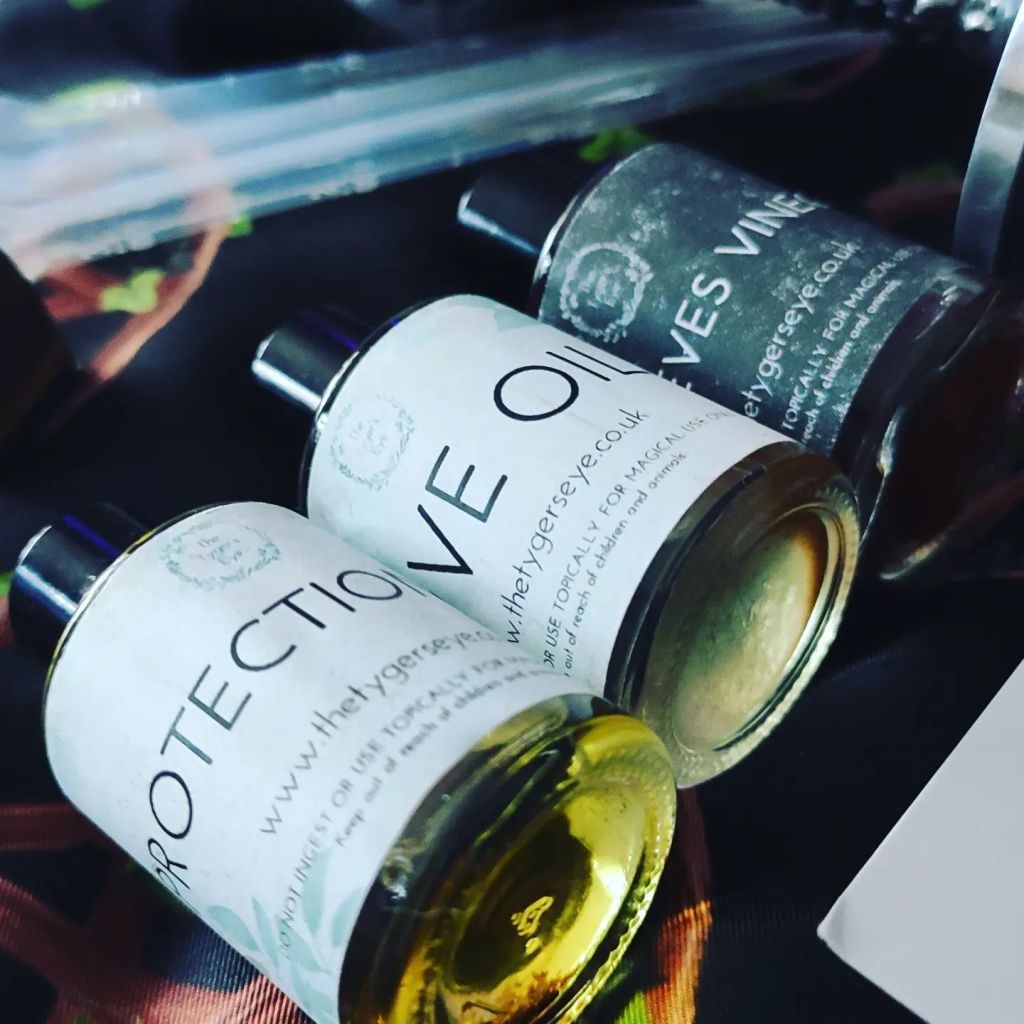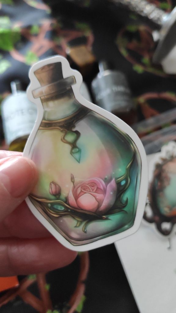 I got myself some oils for candle dressing, to add to sprays and add into rituals. I got a protection oil, great for anointing your tools and sacred space. A love oil, for bringing the self back to a loving space. And four thieves vinegar, perfect to spring clean the house with.