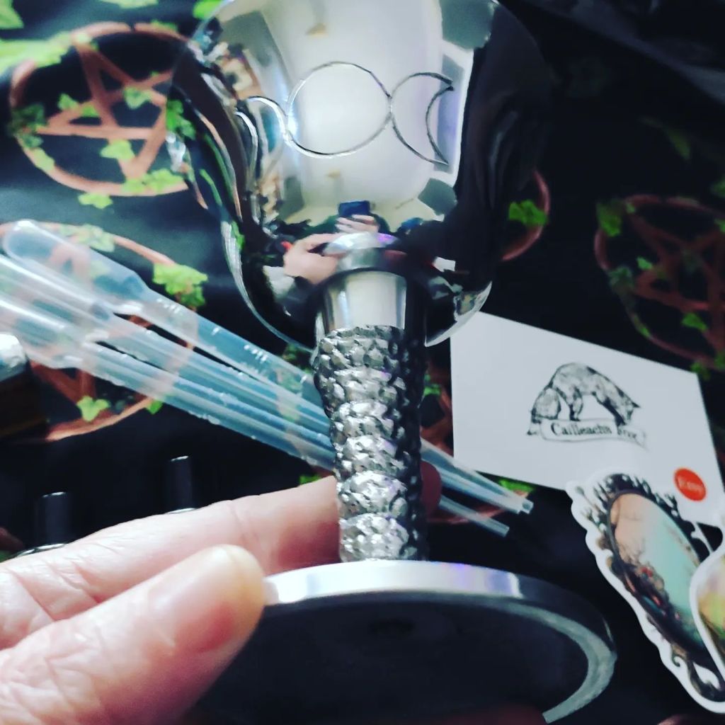 This time I purchased another chalice, to match the one I had bought from here too last year, so now I have a matching pair. Beautiful triple moon, goddess symbol on it.