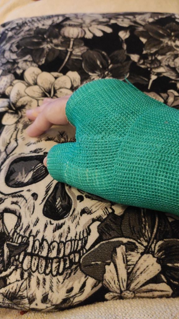 Getting used to the cast is also a Biggie, as I get claustrophobic if a jumper clings too much, so I know mentally having a cast is a challenge for me. But I’ve found ice keeps intrusive thoughts away, and exercising the fingers, or distracting myself with a good movie. Celebrate each day as a victory and a day closer to 20th may. One week down 5 more to go!!