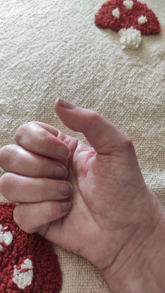 Did I learn from the scissors last week, oh hell no. Somehow in my infinite wisdom, I thought I could Hoover. Oh let me tell you, DON’T do that. I did try with my left, but it was simply too heavy. So massive fail. Right hand oddly stronger, I guess because dominant hand, but it did make it swell up and ache all day.