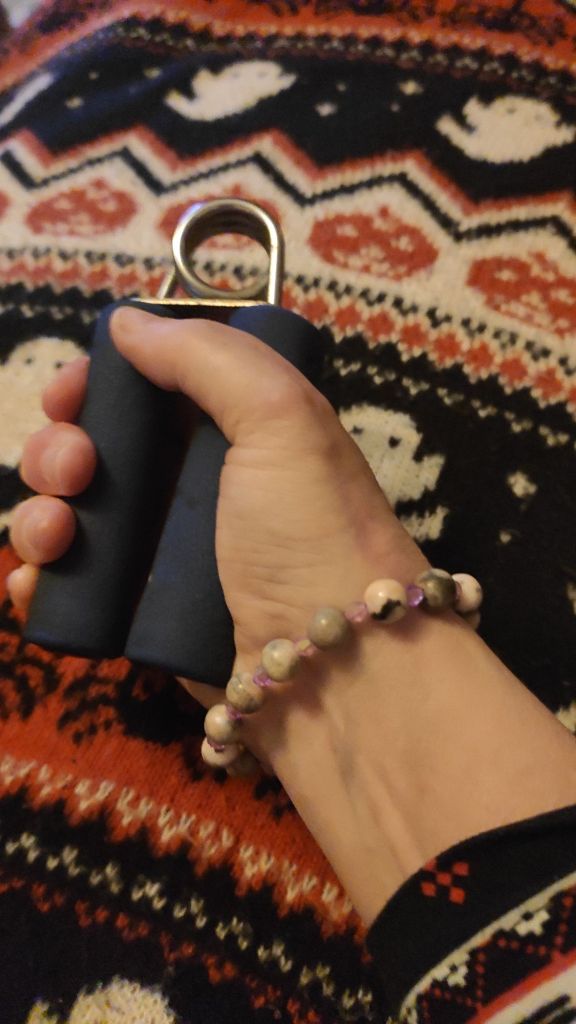 My grip strength is back to before surgery, which is great, dexterity is really good. The book nook I’ve been making for 2 months really helped in that department. It’s now getting the wrist in check and strengthened