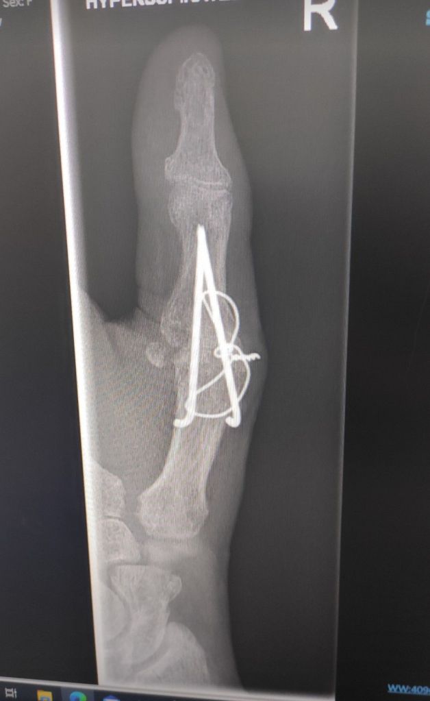 Now the swelling is massively reduced I (think I) can feel the tip of a pin that’s fusing the MCP joint, so I believe it is this that stops me from flexing the top of the thumb fully. (But I could be delulu) And also the weird shooting pains I get in the forearm. I’d love to know what this is, maybe a bit of nerve compressing?