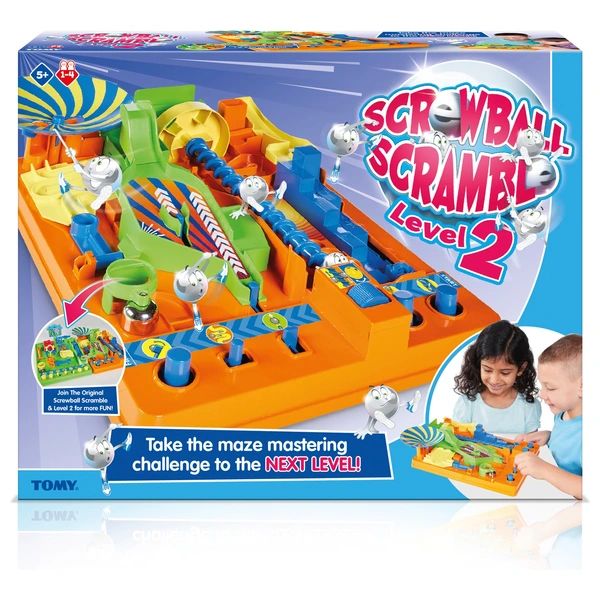 The sequel to the classic game of Screwball Scramble tests coordination and skill on a journey through a maze full of new surprises. Control the action with the buttons, twisting, turning the obstacles different ways to guide the screwball through each one. It starts with Zig-zag steps, next the See-saw leads to the Ferris Wheel Maze then onto the Corkscrew. Gently twist the dial to tease the ball along. Other challenges follow with a final Catapult blast to the Finish bell!