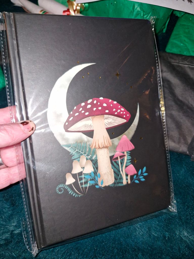 Day One I got a notebook with a cute mushroom and crescent moon on it.