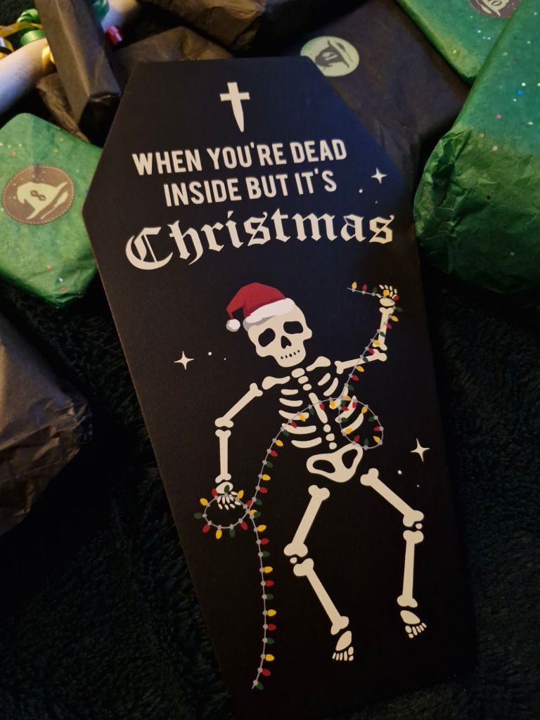 Day 5 it’s a gothic funny Dead inside but it’s Christmas Plaque, coffin shaped. Perfect Christmas decor.