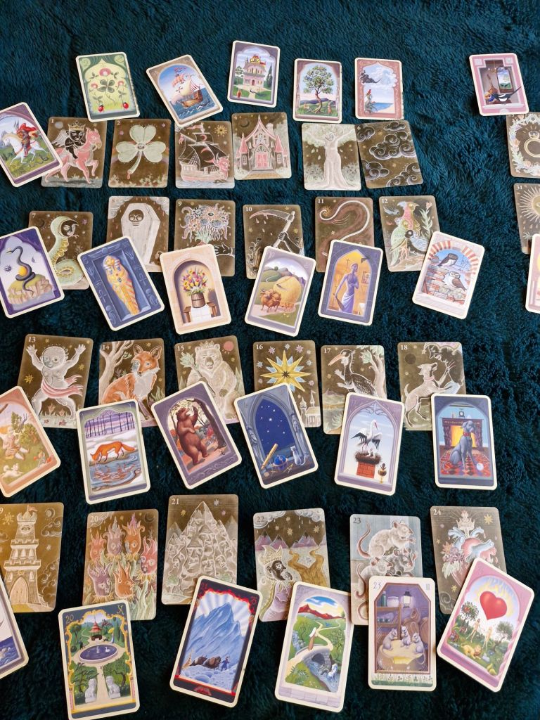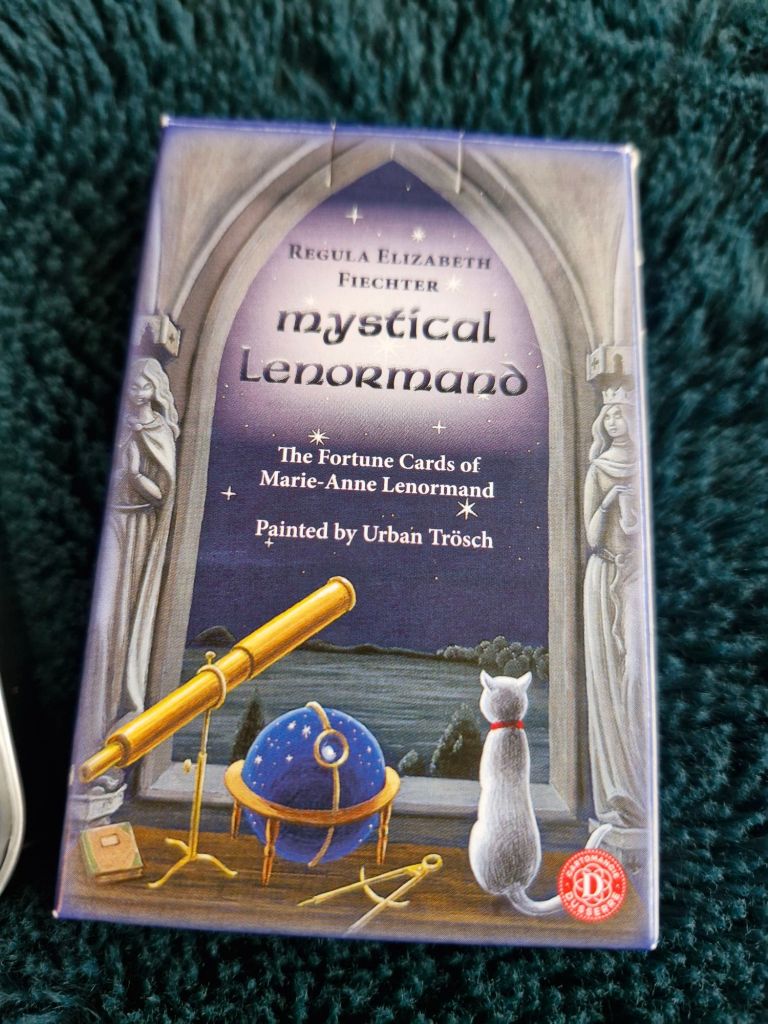 This month I’ve got 2 lenormand decks, which are 36 card pictures similar to tarot, but easier to read apparently, and 2 new oracle decks.