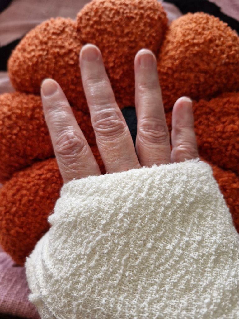 Day 4 Feeling like a zombie, but we plod on. Tramadol, Etoricoxib at 7am. Opposite hand is hurting a lot as its not used to the extra strain of being the main hand, so I’m thinking to keep more meds going today and pain balm, possibly even a compression glove too. I think today has been my genuine WORSE pain day. And it’s only 10.30am, not due any meds until 11am earliest. Took a Dihydrocodine to get me through the day at 11am. Also getting a lot of red face flushing, so I need to take antihistamines to help control it.