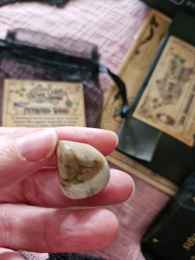 Petrified Wood Tumble Stone fossilised wood created when minerals replace the organic materials in wood, turning it to Stone. Petrified wood is perfect for grounding, it bring balance, calm, symbolises transformation over time, and it can help with changing your path, by giving faith in the future, and trust in the universe.