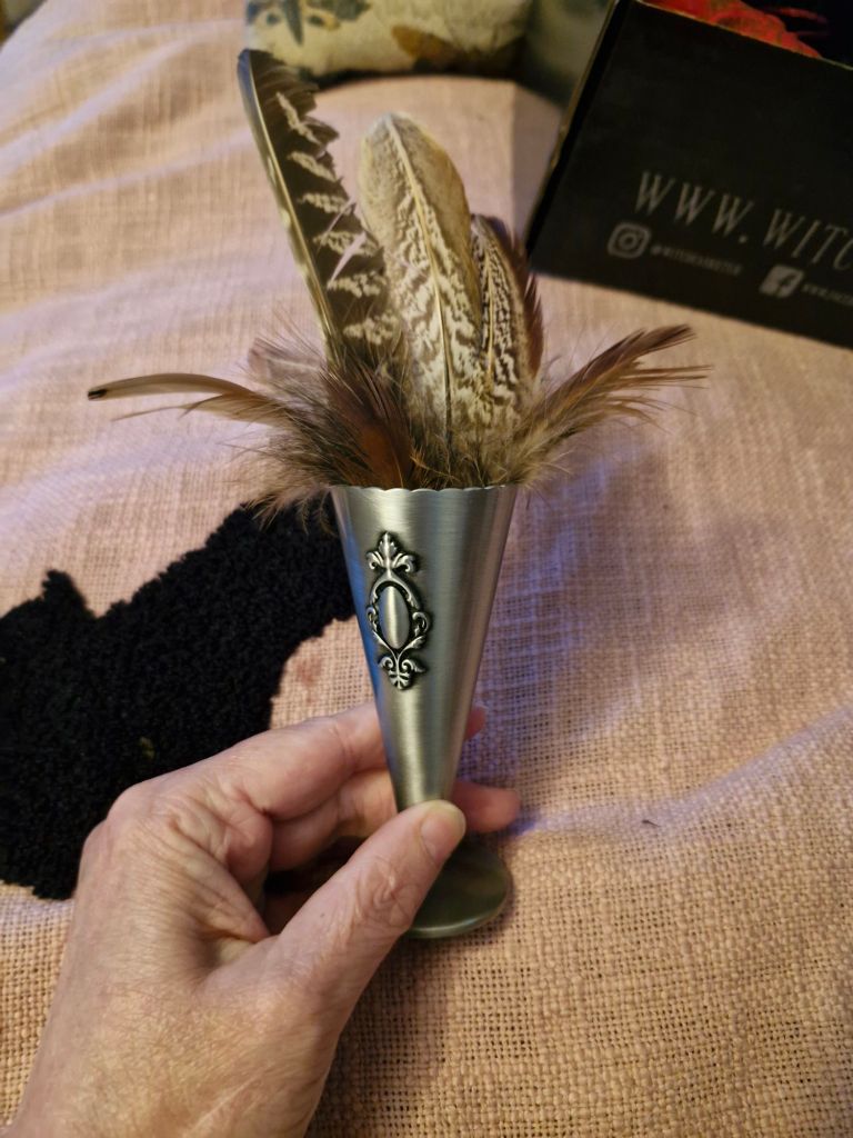 Altar Anomalous which is like a small vase to hold feathers in my case, or posey of flowers, herbs, incense or matches on your altar.
