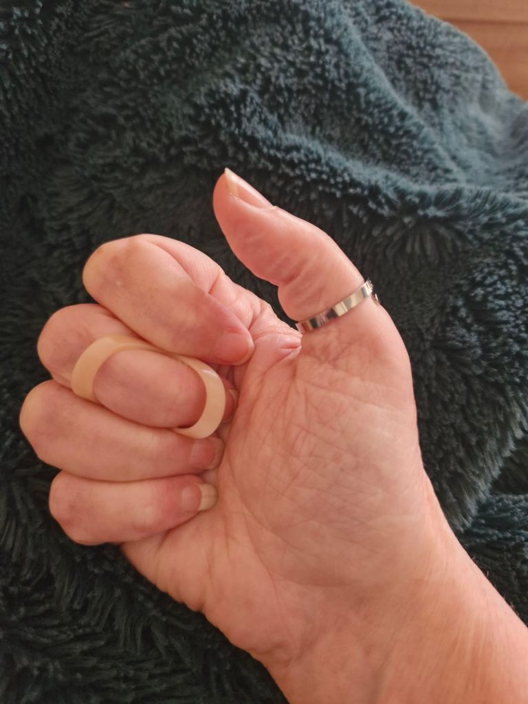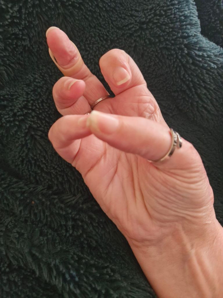I can nearly reach the bottom of the little finger, if the top joint flexed like it should, it would easily reach. But I’m pain free overall. Just aches when I over use it.