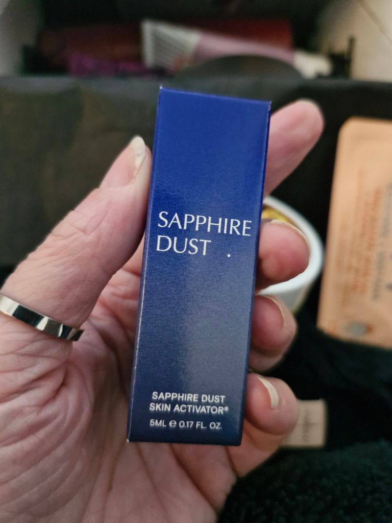 Sapphire Dust, Sapphire Dust Skin Activator 5ml trial size RRP £10.00 Full Size is RRP £95.00 Available here Our innovative, patented SaphirRegen® technology enriched with sapphire microparticles and fruit-derived enzymatic peel acids offers a unique dual exfoliating mechanism. This luxurious self- foaming formula gently resurfaces and renews the skin to look instantly more radiant and refreshed, while over time helping to reduce visible signs of ageing. In addition, skin becomes primed to help boost the benefits from your regular skincare regimen.