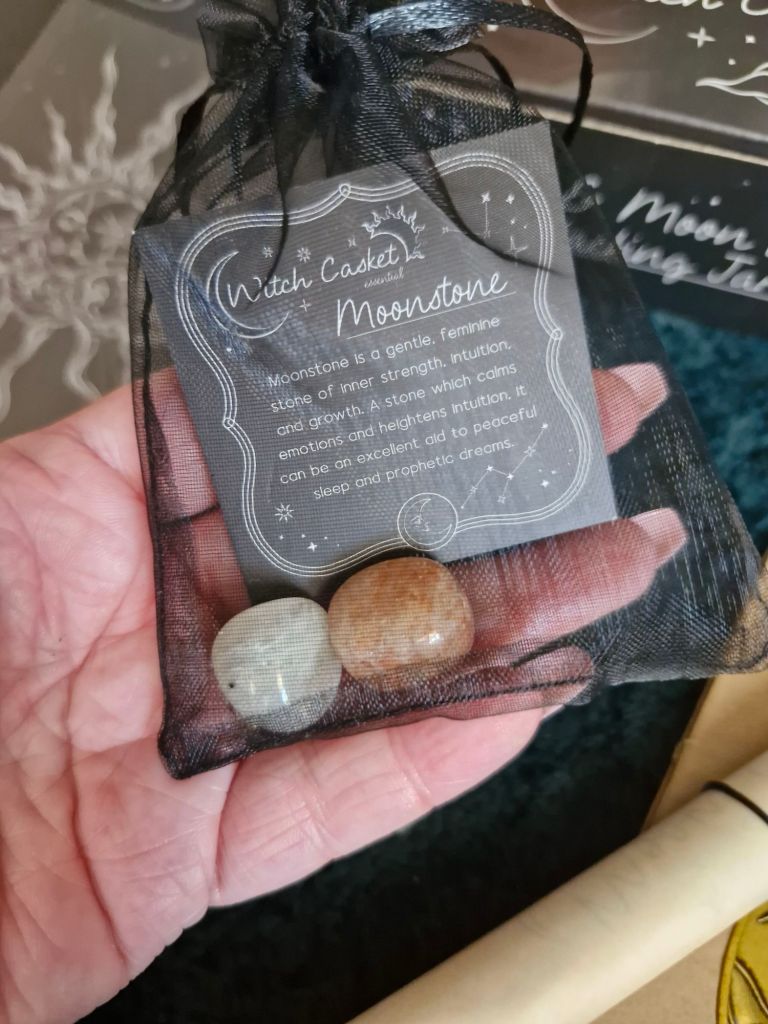 When I saw this advertising the box,I was hoping the wire shaped moon and sun were going to be crafting items in the box, something to do or make. So a little disappointed we didn’t get these. Also we didn’t get an enamel pin badge this month either which felt weird, though the necklace is amazing so I’d rather have that than a badge.