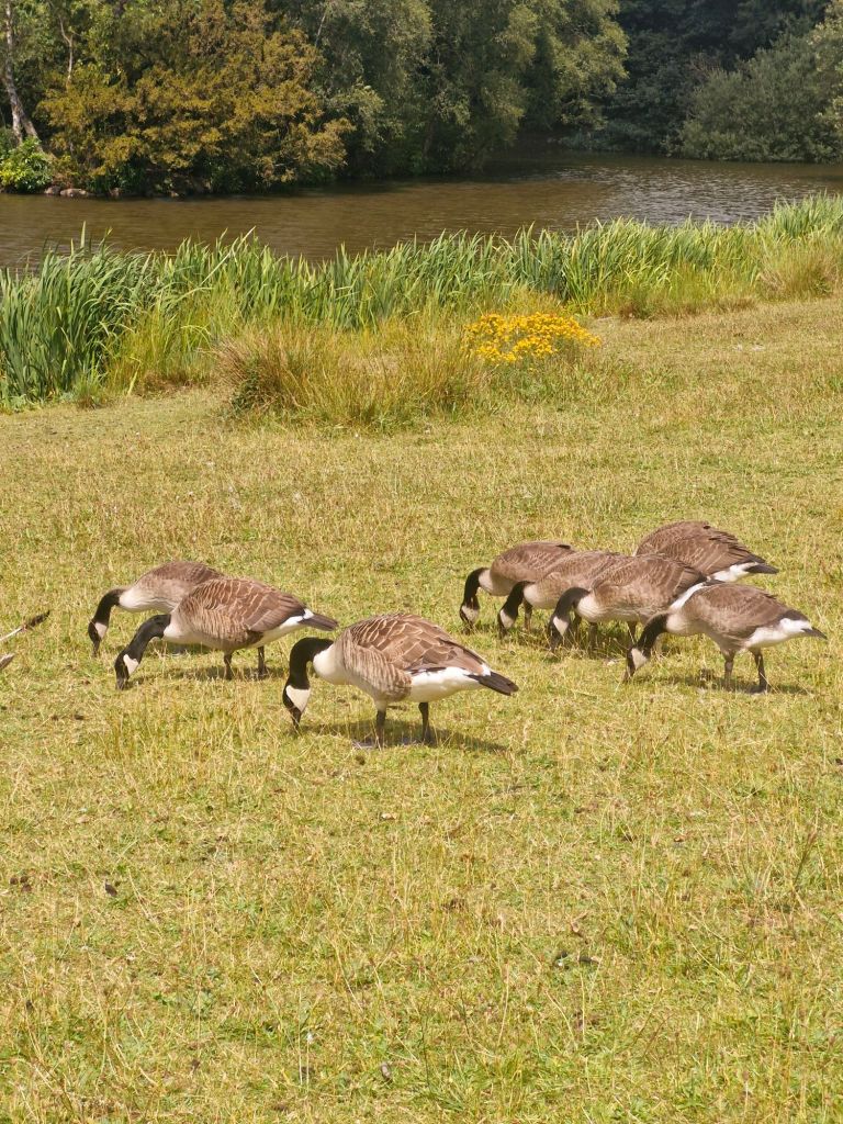 The baby goslings now have adult colouring, just smaller in size. Big gangs of them, like gos teens