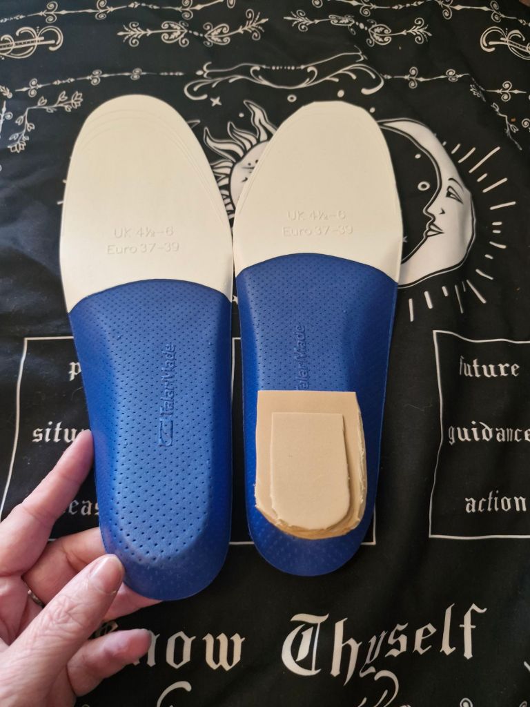 The physiotherapist also made me some extra insoles to help me out, they are just rough ones until I can get an appointment with orthotics, but I have to see a GP first, which is near on impossible at times!!