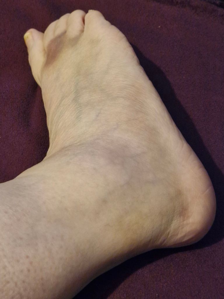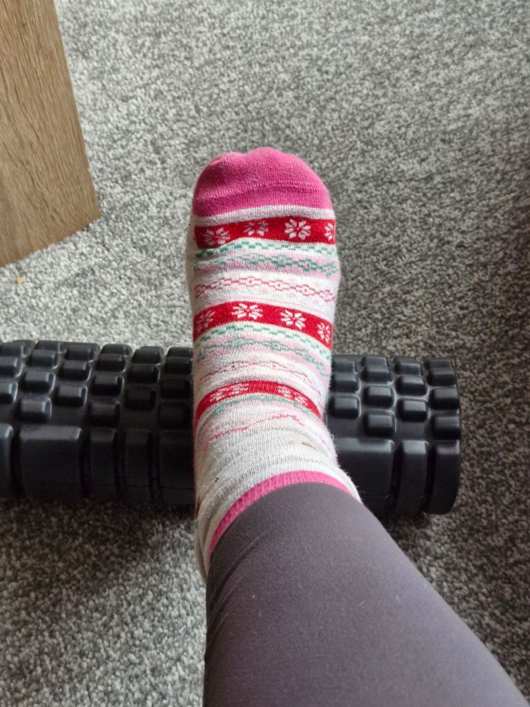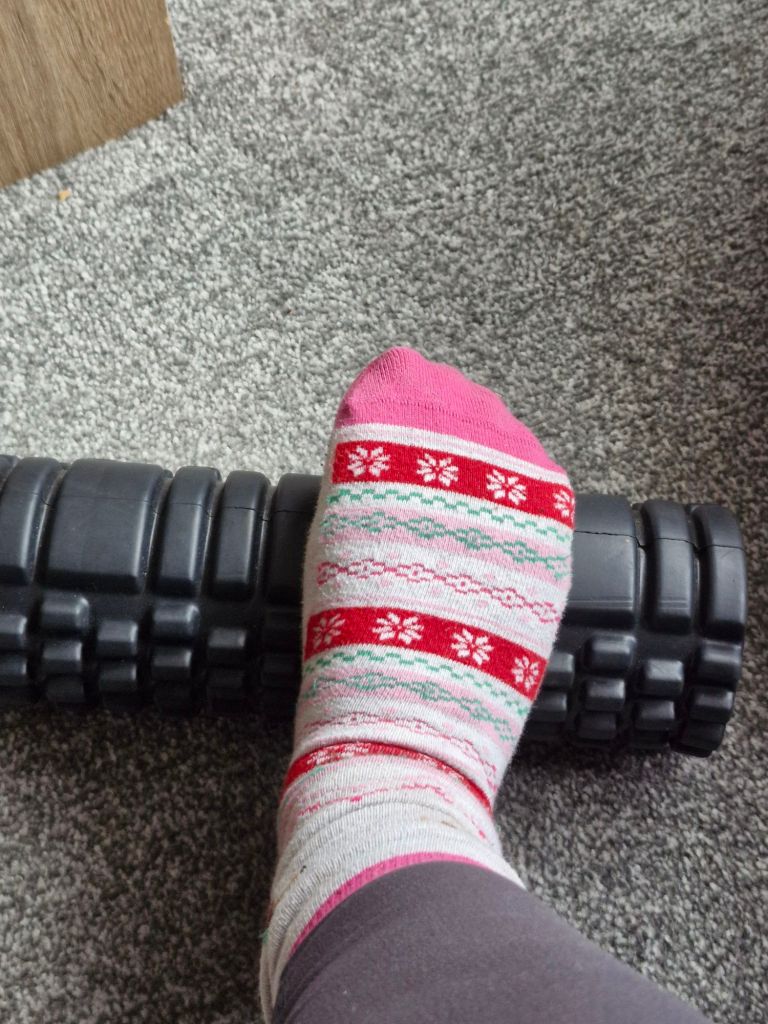I do sit down and roller my foot on the foam roller, and flex the toes, as these are still bruised and sore.
