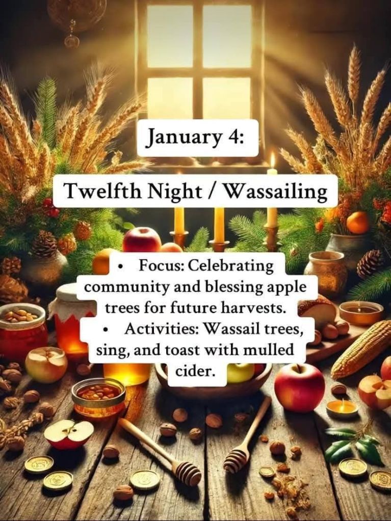 Wassailing: Singing and drinking from a communal bowl in orchards for a good harvest.
