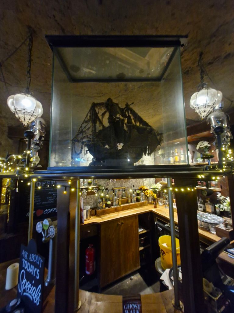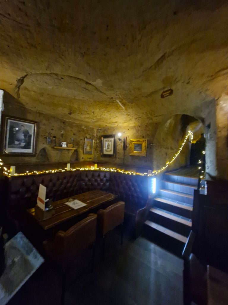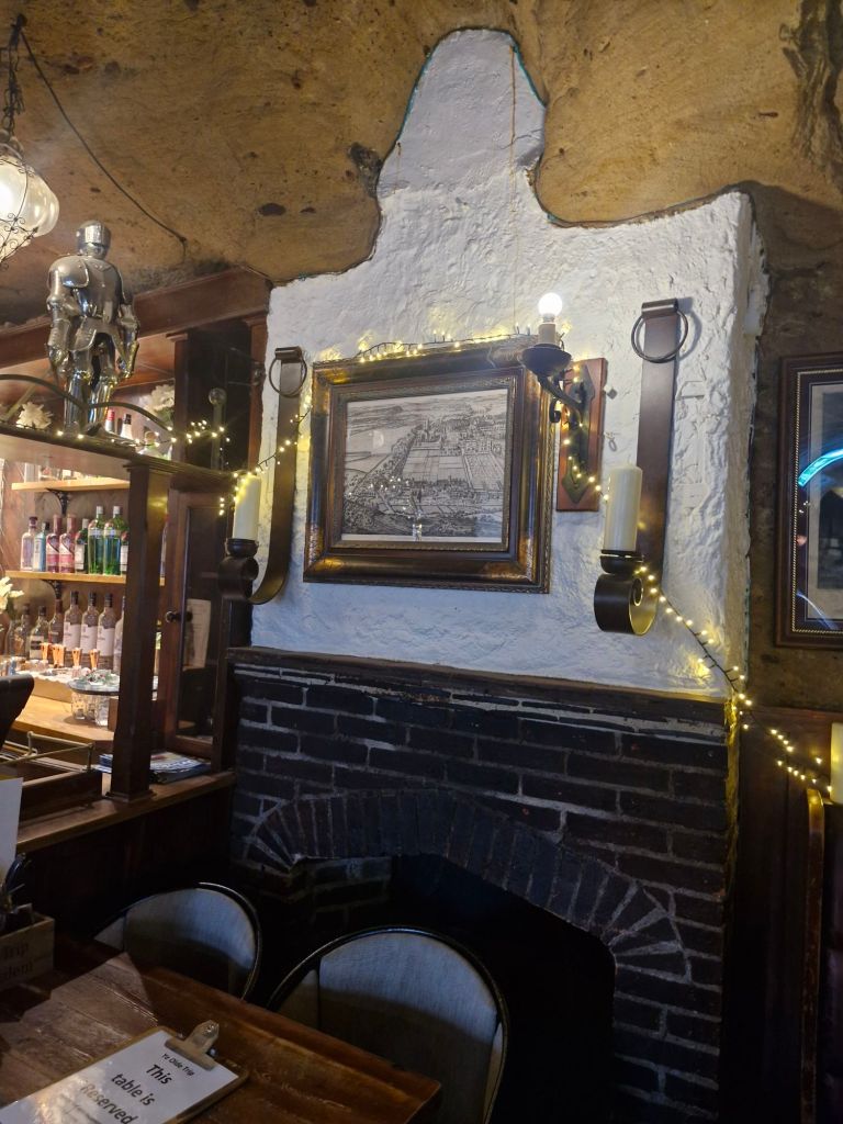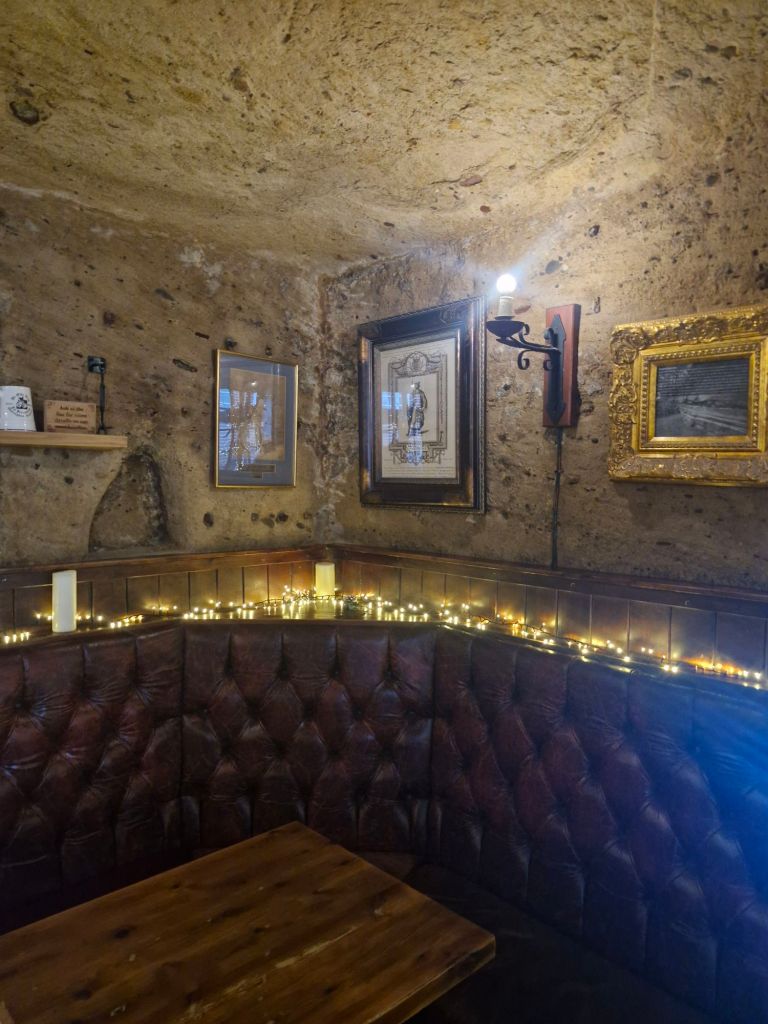 The inn is all built into the caves and each bar has a cool name, like the haunted snug, the chimney tower, the money bar.