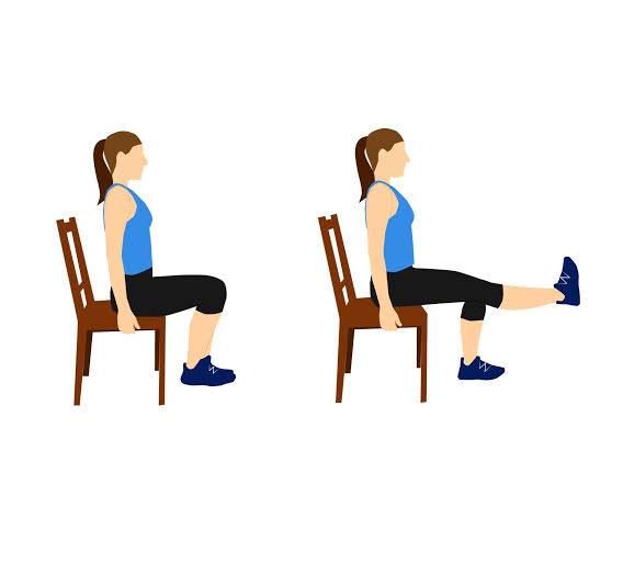 Knee Extension on Chair now I used to use a resistance band, but going back to basics. So u weighted, Lift and hold 5 seconds x 5 reps both sides x 3 times