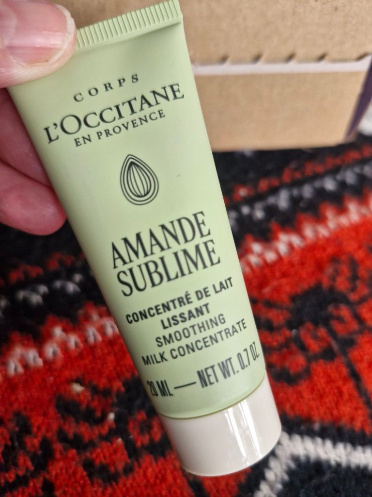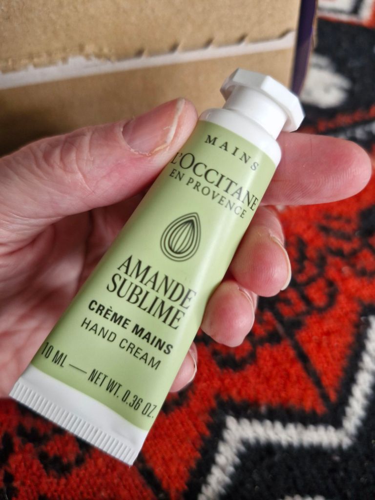 The silky formula is enriched with almond oil and almond milk to help soften the skin, while shea butter supports lasting moisture. Each application leaves hands feeling conditioned and lightly scented with the brand’s almond fragrance. Available here 75ml for £20.00 we have 10ml roughly £2.50
